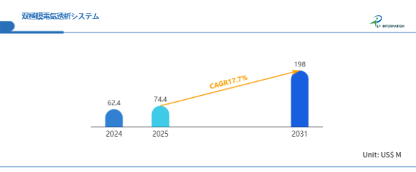 LP Information調査チームの最新レポートである「世界双極膜電気透析システム市場の成長予測2025~2031」(https://www.lpinformation.jp/reports/476156/bipolar-electrodialysis-system)によると、2025年から2031年の予測期間中のCAGRが17.7%で、2031年までにグローバル双極膜電気透析システム市場規模は1.98億米ドルに達すると予測されている。