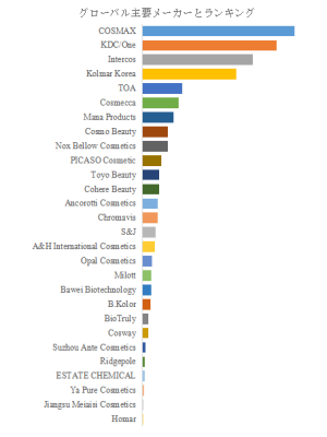世界の化粧品OEM・ODM市場を牽引する主な企業には、COSMAX、KDC/One、Intercos、Kolmar Korea、TOA、Cosmecca、Cosmo Beauty、Mana Products、Nox Bellow Cosmetics、PICASO Cosmeticなどがある。LP Informationによると、2024年時点で上位10社が世界売上の約22%を占めており、高い集中度を示している。これらの企業は単なる製造拠点ではなく、研究開発・処方提案・ブランド共創において突出した競争力を有する。韓国のKolmar KoreaやCOSMAXは、K-Beautyトレンドを牽引するイノベーションハブとして機能し、欧米市場でも顧客基盤を拡大している。イタリアのIntercosは高級ブランド向け処方の強みを生かし、グローバル市場で安定した地位を築いている。こうしたプレイヤー間の競争は「技術・創意・信頼」を軸に展開されており、業界全体の高度化を促している。