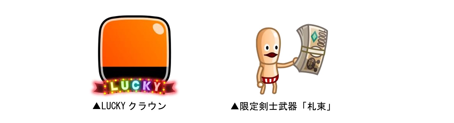 1等(1口):101,100ルビー、LUCKYクラウン、剣士武器「札束」