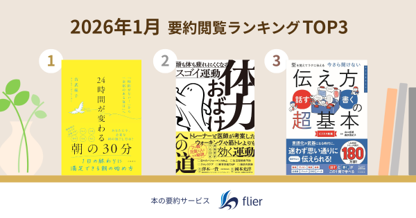 累計会員数129万人を突破した本の要約サービス「flier(フライヤー)」を運営する株式会社フライヤー(本社:東京都千代田区、代表取締役CEO 大賀康史)は、2026年1月のビジネス書月間ランキングを発表しました。