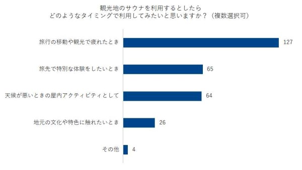 【質問】観光地のサウナを利用するとしたら、どのようなタイミングで利用してみたいと思いますか?(複数選択可)