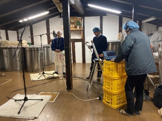 このたびのコラボレーションでは、舩坂酒造店の杜氏歌唱による飛騨の「めでた唄」を事前に収録し、収録した「めでた唄」を加振器からタンク内のもろみに聴かせることで、熟成を行っております。