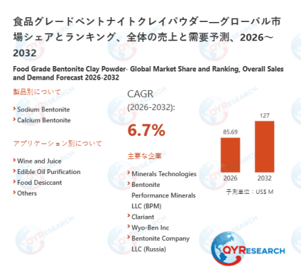 2026年2月2日、QYResearch株式会社(所在地:東京都中央区)は、「食品グレードベントナイトクレイパウダー―グローバル市場シェアとランキング、全体の売上と需要予測、2026~2032」に関する最新の調査レポートを発表しました。本レポートは、食品グレードベントナイトクレイパウダー市場における全体の市場規模、販売動向、価格推移、地域別・国別の成長傾向、製品タイプや用途ごとのセグメント分析を網羅しています。