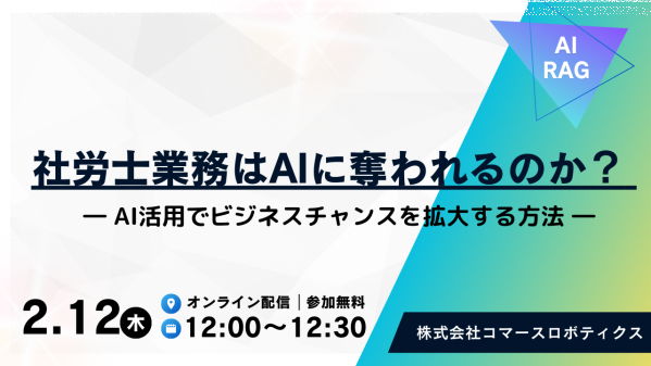 株式会社コマースロボティクス(本社:東京都港区、代表取締役:伊藤彰弘)は、社労士事務所向けに、生成AIを活用して労務業務の効率化と売上拡大を実現することをテーマとした無料オンラインウェビナーを開催いたします。