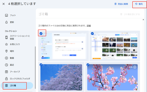 2. Googleフォトゴミ箱から写真を復元する方法(削除から60日以内)
