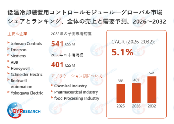 2026年2月3日、QYResearch株式会社(所在地:東京都中央区)は、「低温冷却装置用コントロールモジュール―グローバル市場シェアとランキング、全体の売上と需要予測、2026~2032」に関する最新の市場調査レポートを発表しました。本レポートは、低温冷却装置用コントロールモジュールの世界市場における売上規模、販売数量、価格動向、市場シェア、主要企業のポジショニングなどを網羅的に分析したものです。地域別・国別の市場構造に加え、製品タイプ別および用途別のセグメントに基づく詳細なデータを提供しています。