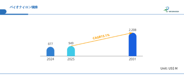 LP Information調査チームの最新レポートである「世界バイオナイロン繊維市場の成長予測2026~2032」(https://www.lpinformation.jp/reports/593593/bionylon-fiber)によると、2025年から2031年の予測期間中のCAGRが15.1%で、2031年までにグローバルバイオナイロン繊維市場規模は22.08億米ドルに達すると予測されている。