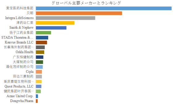 LP Informationのトップ企業研究センターによると、やけど治療薬の世界的な主要製造業者には、美宝医药科技集团、贝朗、Integra LifeSciences、津药达仁堂、Smith & Nephew、扬子江药业集团、STADA Thornton & Ross、Kenvue Brands LLC、长春海外制药集团有限公司、Orkla Healthなどが含まれている。2024年、世界のトップ5企業は売上の観点から約43.0%の市場シェアを持っていた。