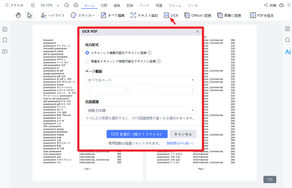 ステップ4.OCR処理を実行し、変換後ファイルをダウンロード