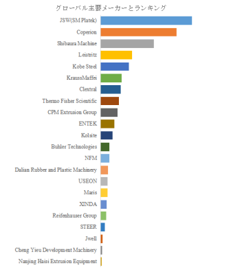 企業別では、JSW(SM Platek)、Coperion、Shibaura Machine、Leistritz、Kobe Steel、KraussMaffei、Clextral、Thermo Fisher Scientific、CPM Extrusion Groupなどがグローバル市場をリードしている。各社は、独自のスクリュー設計、耐摩耗性材料、高精度制御技術を競争軸とし、特定用途向けのカスタマイズモデルや、省エネ・環境対応機を開発して差別化を図っている。また、顧客サポートや保守・教育サービスの充実も競争力強化の重要要素となっており、単なる機械供給ではなく、製造プロセス改善や製品品質向上を含むソリューション提供型のビジネスモデルが定着している。これにより、地域や業界特性に応じた市場戦略が展開され、企業間競争と市場拡大を同時に促進している。