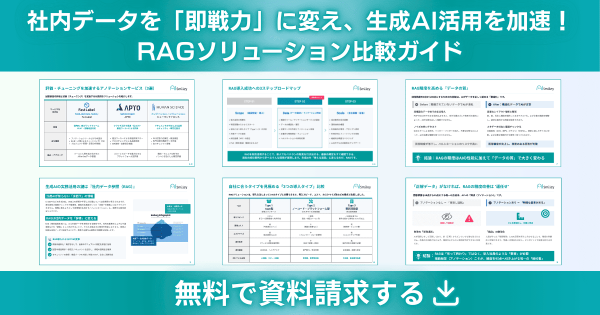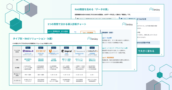 そこでAIsmileyは、これからRAG導入を検討する多くの企業が失敗しないよう、ソリューション選定からデータ整備の手順までを網羅した『RAGソリューション比較ガイド』を作成しました。