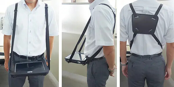 付属のショルダーベルトで落下を防止し業務の安全化が図れます。