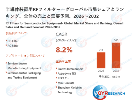 2026年2月5日、QYResearch株式会社(所在地:東京都中央区)は、「半導体装置用RFフィルター―グローバル市場シェアとランキング、全体の売上と需要予測、2026~2032」に関する最新の調査レポートを発表しました。本レポートは、半導体装置用RFフィルター市場における全体の市場規模、販売動向、価格推移、地域別・国別の成長傾向、製品タイプや用途ごとのセグメント分析を網羅しています。