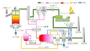 内燃機関発電システム:生成したシンガスをガスエンジンで燃焼させ発電。小~中規模システムの主流で、応答性が良い。