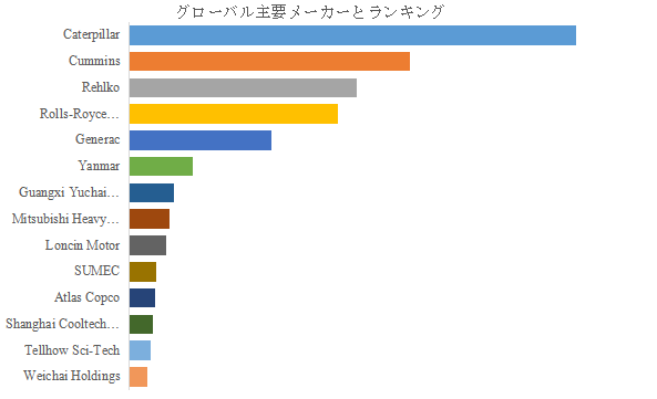 LP Informationのトップ企業研究センターによると、非常用ディーゼル発電システムの世界的な主要製造業者には、Caterpillar、Cummins、Rehlko、Rolls-Royce Solutions、Generac、Yanmar、Guangxi Yuchai Machinery、Mitsubishi Heavy Industries、Loncin Motor、SUMECなどが含まれている。2024年、世界のトップ5企業は売上の観点から約63.0%の市場シェアを持っていた。
