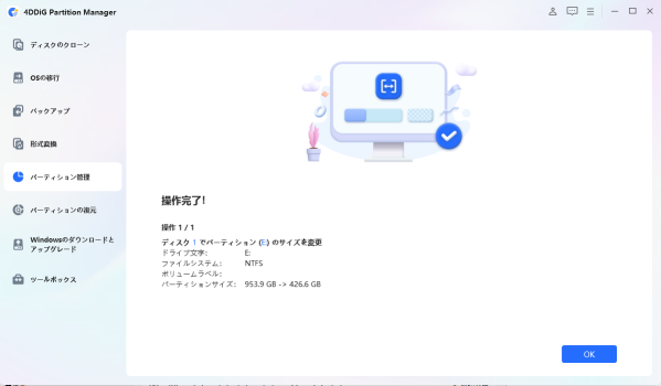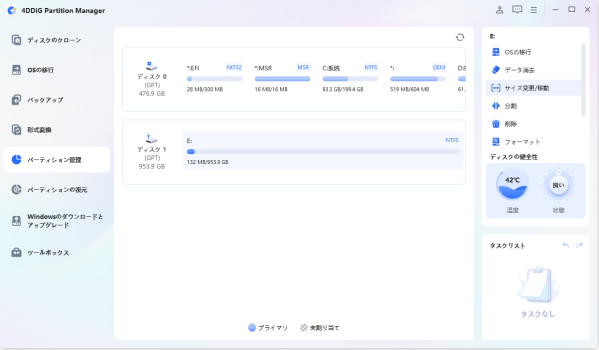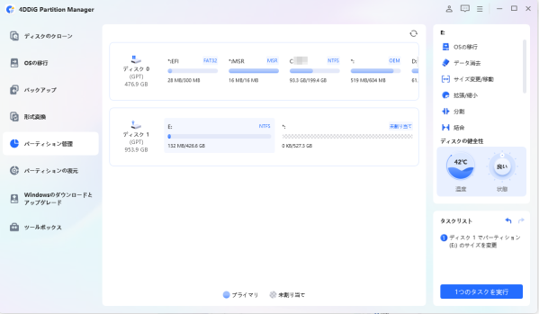 4DDiG Partition Managerは、初心者から上級者まで幅広く支持される高機能なパーティション管理ソフトです。直感的に操作できるインターフェースと豊富な機能を備え、さまざまなパーティション管理のニーズに柔軟に対応します。