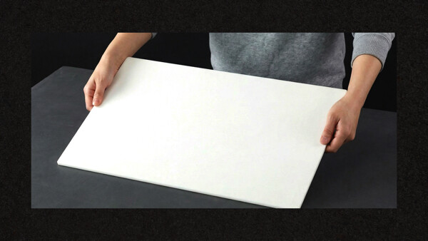 本製品の天板には、タカラスタンダード社のキッチン天板に使用されているアクリル系人造大理石素材の抜き材を再利用して制作しております。