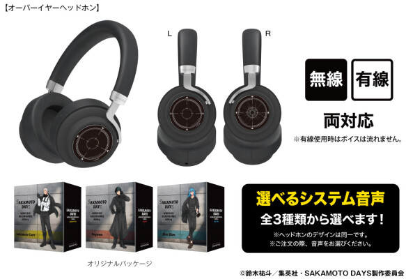 本コラボレーションモデルは、「坂本太郎」「南雲」「赤尾リオン」の3モデル。作品をイメージしたモチーフを左右ハウジングプレートに配置。各キャラクターの新規録り下ろしボイスを搭載。電源オンやオフ、ペアリング時やタップ音等、各計15ワードを楽しめます。ヘッドホンお届け時期に専用アプリ「ANIMA Studio」にて各3キャラクターの音声ガイダンスDL販売を予定しております。TVアニメ 『SAKAMOTO DAYS』ワイヤレスヘッドホンご購入者のみDL購入が可能で、初期搭載ボイス(購入モデルのボイス)に加え、DL購入ボイスも楽しめる仕様となっております。パッケージは描き下ろしイラストデザインとなっております。