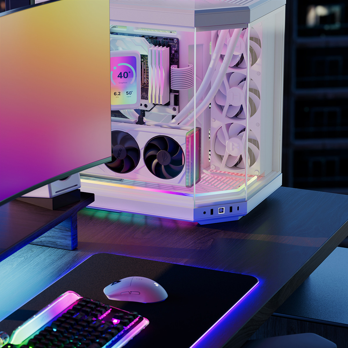 HYTE Noodle LN60は、Y40、Y60、Y70シリーズ向けRGBライティングキットです。40個ものRGB LEDと、光を美しく拡散するディフューザーを備えたストリップに専用の取り付けクリップが付属し、完璧にマッチするように設計されています。サイドパネルのガラスに沿ってPCケース全体を自由自在に彩ることが可能です。ケースやシステムのカラーリングに合わせて選べるブラックとホワイトの2色をラインアップ。
