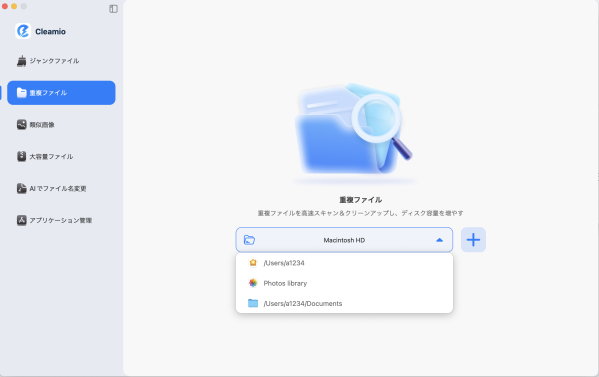 Tenorshare Cleamioは、シンプルな操作でMac内の重複ファイルを整理できるアプリです。このアプリは、ユーザーが手動で探す必要なく、重複したファイルを自動的に検索します。写真、音楽、ドキュメント、アプリケーションなど、さまざまな種類のファイルに対応しており、パフォーマンスを損なうことなくストレージを最適化できます。