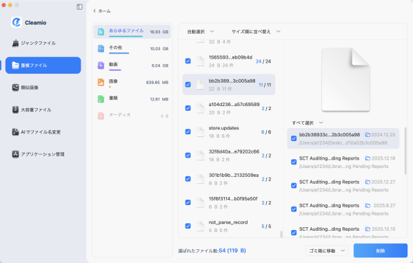 ステップ3: スキャン結果を確認し、AIの推奨に従って重複なファイルをを選択して削除します。プレビュー機能を使用して、削除前にファイルの内容を確認することもできます。