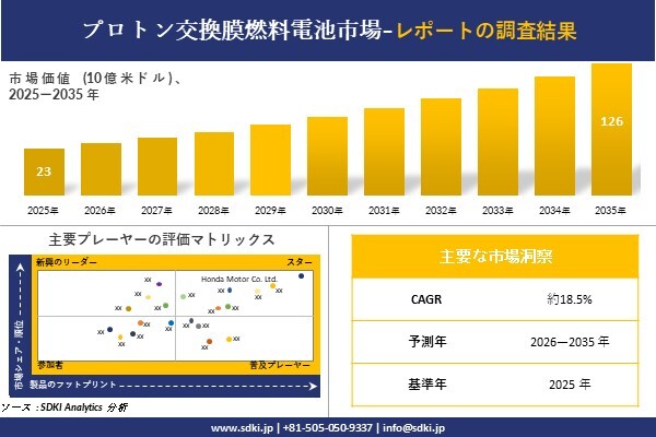 SDKI Analytics(本社:東京都渋谷区)は、このたび、2026年01月30に「プロトン交換膜燃料電池市場調査レポート:2026-2035年の市場規模、シェア、傾向の予測」を発表しました。プロトン交換膜燃料電池に関する市場調査レポートには、統計的および分析的アプローチを使用した予測評価が含まれています。この調査レポートでは、一次および二次調査方法を使用して分析された主要な業界洞察を通じて将来の傾向を理解できるようにすることで、主要な市場動向を読者に説明しています。