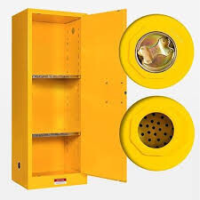 可燃性キャビネットとは、引火性・可燃性のある化学薬品、溶剤、アルコール類、塗料、ガスボンベなどを安全に保管するために設計された専用の保管設備でございます。可燃性キャビネットは耐火性の高い鋼板構造、二重壁設計、防爆ヒンジ、自動閉鎖扉、換気口、漏液受けトレーなどの安全機構を備えており、火災発生時の延焼防止や蒸気拡散の抑制に大きく寄与いたします。また、工場、研究所、医療機関、教育機関など幅広い現場で使用され、各国の安全規格や消防法令に準拠した設計が求められる点も特徴でございます。適切な可燃性キャビネットの導入は、作業環境の安全性向上、事故リスク低減、法令遵守の観点から極めて重要でございます。