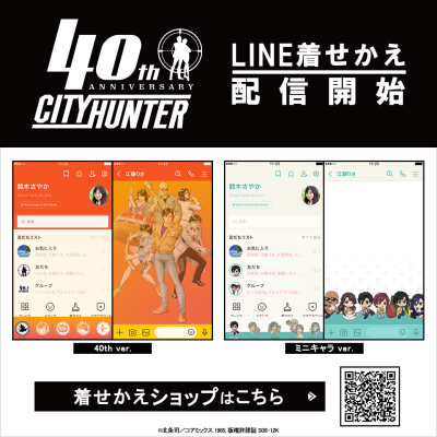 連載開始から40周年を迎えた「シティーハンター」より、「40th ビジュアルver.」と「ミニキャラver.」のLINE着せかえがインクルーズの販売アカウントより2点一斉に配信開始!是非、LINE着せかえでも「シティーハンター」の世界観をお楽しみください。