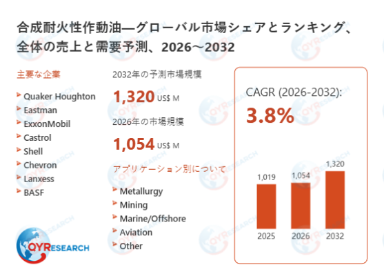 QY Research株式会社(東京都中央区)は、「合成耐火性作動油―グローバル市場シェアとランキング、全体の売上と需要予測、2026~2032」の最新レポートを発表しました。