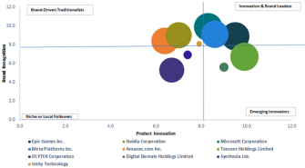 主要企業にはエピックゲームズ、エヌビディア、マイクロソフト、メタ、アマゾン、テンセントなどが含まれるが、単独支配は見られない。