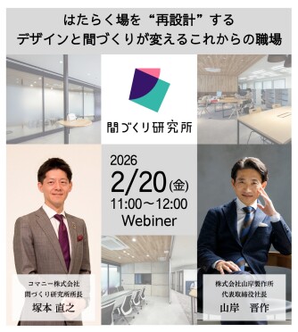 間仕切りで新たな価値を創造する間づくりカンパニーのコマニー株式会社(本社:石川県小松市、代表取締役社長執行役員:塚本健太)は、同社の間づくり研究所の主催で2026年2月20日にはたらく環境におけるデザインや「間づくり」の重要性をテーマとしたオンラインイベントを開催することをお知らせします。