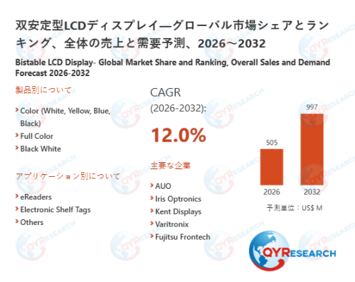 QY Research株式会社(東京都中央区)は、「双安定型LCDディスプレイ―グローバル市場シェアとランキング、全体の売上と需要予測、2026~2032」の最新レポートを発表しました。