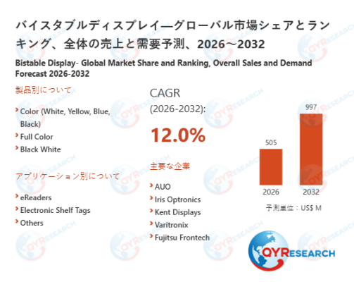 2026年2月13日、QYResearch株式会社(所在地:東京都中央区)は、「バイスタブルディスプレイ―グローバル市場シェアとランキング、全体の売上と需要予測、2026~2032」に関する最新の調査レポートを発表しました。本レポートは、バイスタブルディスプレイ市場における全体の市場規模、販売動向、価格推移、地域別・国別の成長傾向、製品タイプや用途ごとのセグメント分析を網羅しています。