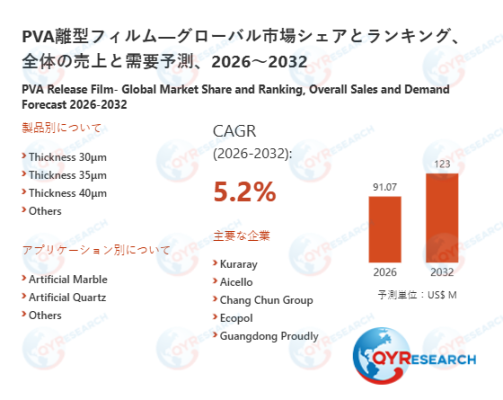 QYResearch株式会社(所在地:東京都中央区)は、最新の市場調査レポート「PVA離型フィルム―グローバル市場シェアとランキング、全体の売上と需要予測、2026~2032」を発表しました。