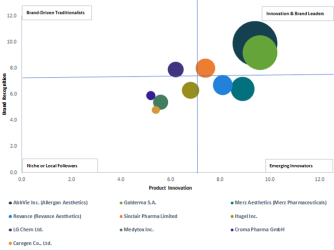 美容用充填注入市場は中程度の集中度を持ち、2024年には上位10社で世界売上の38%を占めた。主要企業には以下が含まれる: