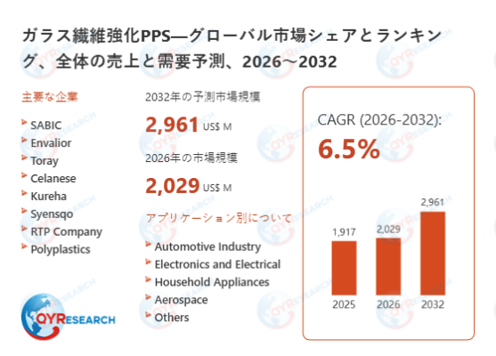 QY Research株式会社(東京都中央区)は、「ガラス繊維強化PPS―グローバル市場シェアとランキング、全体の売上と需要予測、2026~2032」の最新レポートを発表しました。
