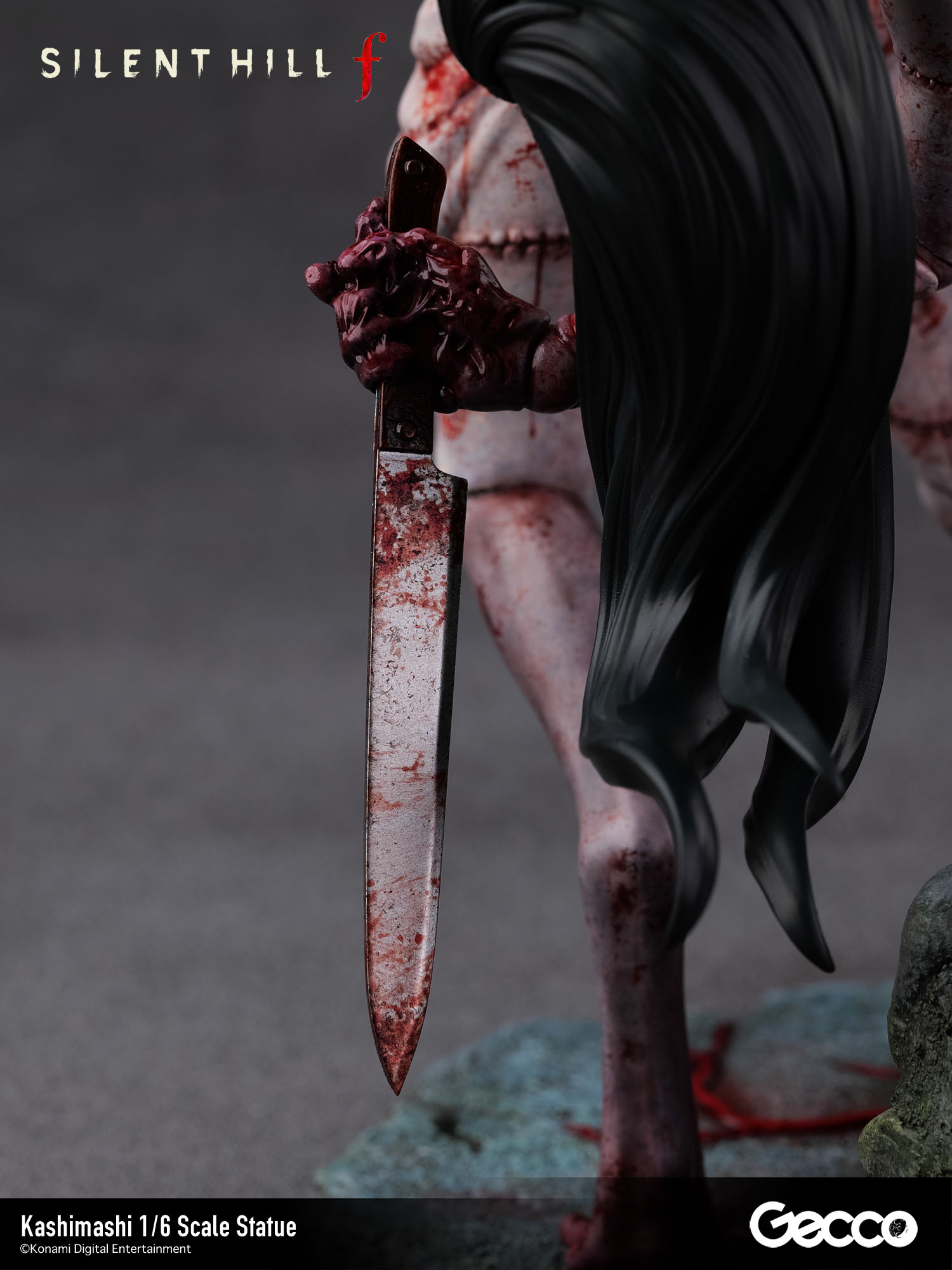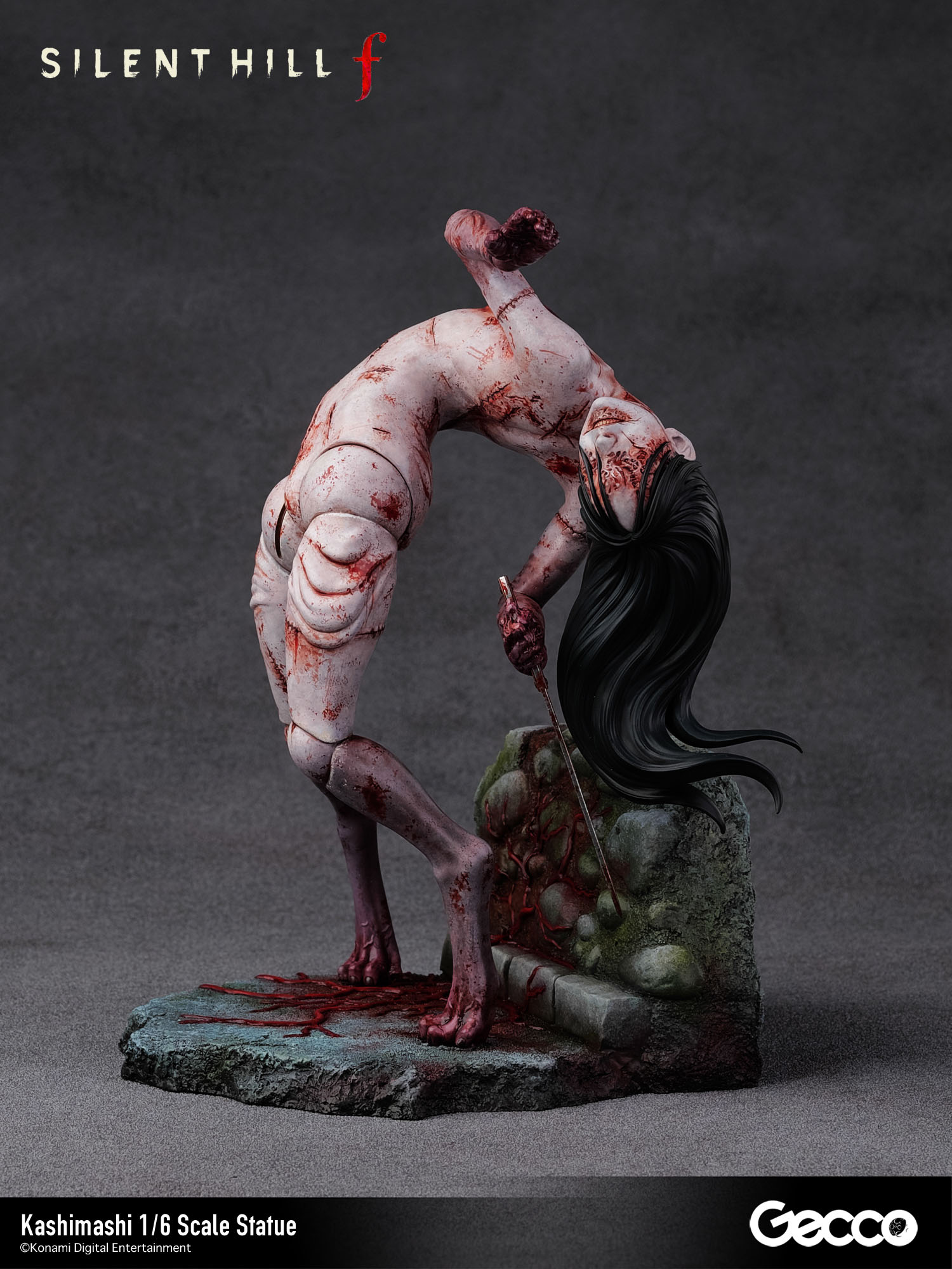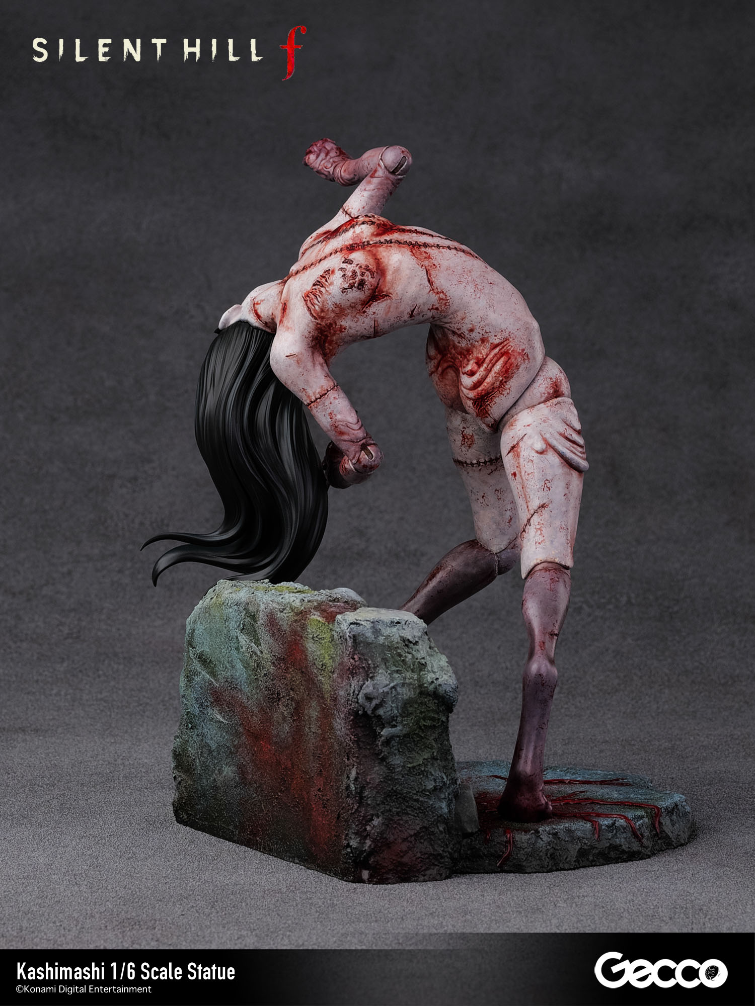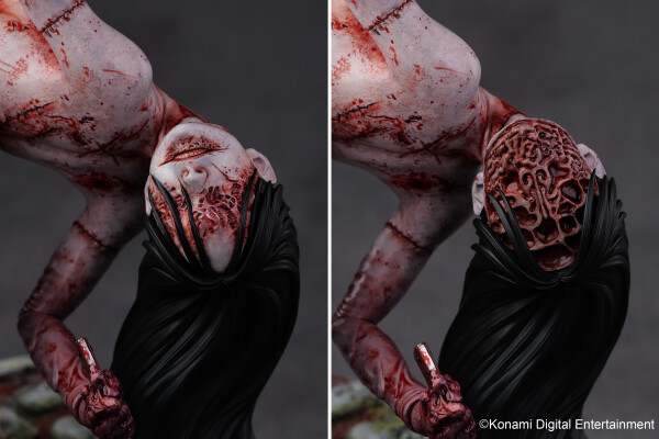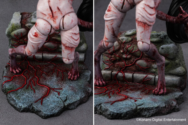 サイコロジカルホラー『SILENT HILL f』のあらゆるステージで不気味な笑みを浮かべながらプレイヤーに襲いかかるバケモノ、カシマシが1/6スケールスタチューとして登場。肉塊を縫い合わせた人型ではあるものの各関節が歪に曲がり、どの角度から見ても不穏な空気を醸し出す立体物となっている。