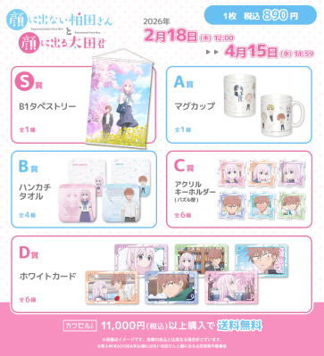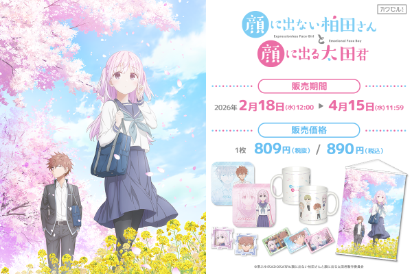 株式会社インクルーズ(東京都渋谷区、代表取締役社長 山﨑 健司)が企画・運営するフィジカルグッズのオンラインくじ「カワセルくじ」にて、2月18日(水)より、TVアニメ「顔に出ない柏田さんと顔に出る太田君」のくじが販売開始になりましたことをご報告させていただきます。