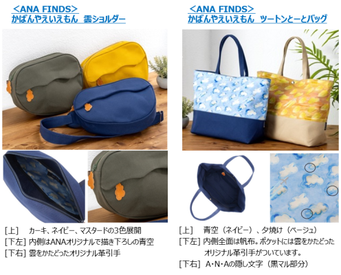 全日空商事株式会社(本社:東京都港区、代表取締役社長:宮川純一郎)は、『ANA FINDS』(https://anafinds.anatc.com/)の「バッグ&トラベル」と「グルメ」カテゴリーの新商品を、2月20日より、ANA公式ECサイト「ANAショッピング A-style(以下、A-style)」および「ANAショッピング A-style ANA Mall 店(以下、ANA Mall店)」、空港内ギフトショップ「ANA FESTA」にて順次販売を開始します。「バッグ&トラベル」では、滋賀県高島市の伝統産業である帆布を用いたオリジナルバッグを生産する「かばんやえいえもん」との初めてのコラボレーションによるオリジナルバッグを発売。「グルメ」では、旅の思い出を呼び起こす北海道・九州・沖縄の4商品を新たにラインナップします。あわせて、A-styleでは『ANA FINDS』2周年に際し、抽選でグルメ商品があたるキャンペーンも実施します。