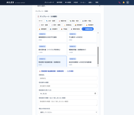 AILEXのAI文書生成機能に、懲戒請求への対応に特化した3種類のテンプレートを新たに追加しました。