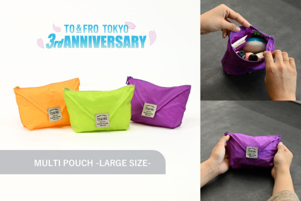 TO&FROの人気アイテムランキングでも1位常連の大人気マルチポーチを、「TO&FRO TOKYO 3rd.Anniversary」限定でラージサイズでお作りしました!