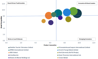 デロイト トウシュ トーマツ リミテッドが4.7%で最大の市場シェアを持ち、続いてプライスウォーターハウスクーパース インターナショナル リミテッド(3.9%)、KPMG インターナショナル リミテッド(3.4%)、アーンスト・アンド・ヤング グローバル リミテッド(3.0%)などのアドバイザリー企業が続いています。