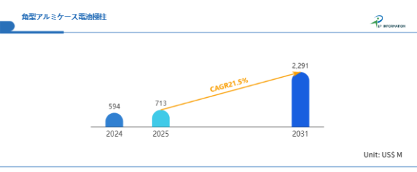 図. 角型アルミケース電池極柱世界総市場規模