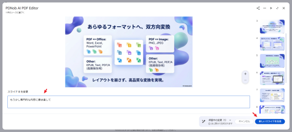 しかし新機能により、スライド単位で自然言語による修正指示が可能になりました。