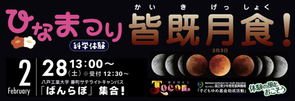 一般社団法人TOCOLは、一般の子どもたちを対象とした科学体験ワークショップ 『段ボール製スマホ天体望遠鏡をつくって「ひなまつり皆既月食」を見よう』を、2月28日(土)に開催します。
