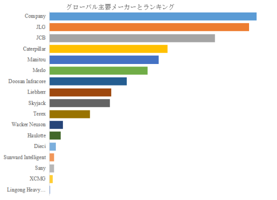 市場集中度を見ると、2025 年時点で世界トップ 17 企業の合計シェアは約 83.4%となり、市場は中程度の集中度を呈している。其中、JLG が 15.13%、JCB が 14.59%、Caterpillar が 12.11%のシェアを占め、トップ 3 企業が市場の約 41.83%を掌握してリーダーシップを発揮している。この市場構造は、技術蓄積とブランド力の差に起因して、今後も一定期間維持されると予測される。
