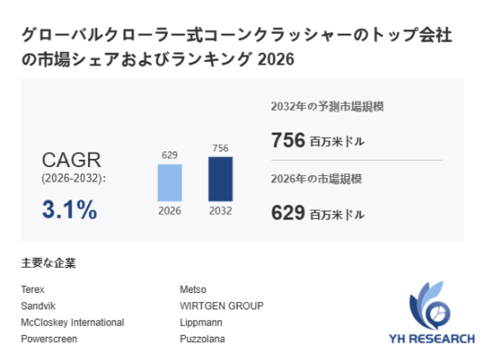本記事は、YH Researchが発行したレポート「グローバルクローラー式コーンクラッシャーのトップ会社の市場シェアおよびランキング 2026」 を紹介しています。