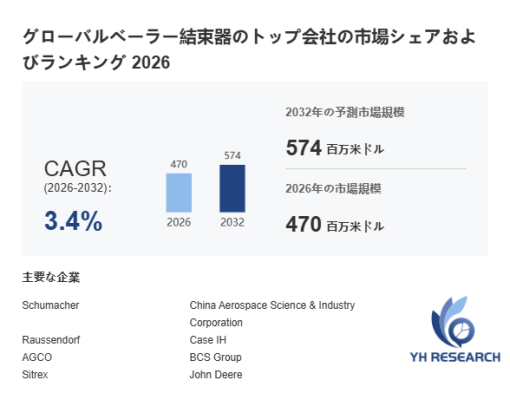 上記の図表/データは、YHResearchの最新レポート「グローバルベーラー結束器のトップ会社の市場シェアおよびランキング 2026」から引用されています。