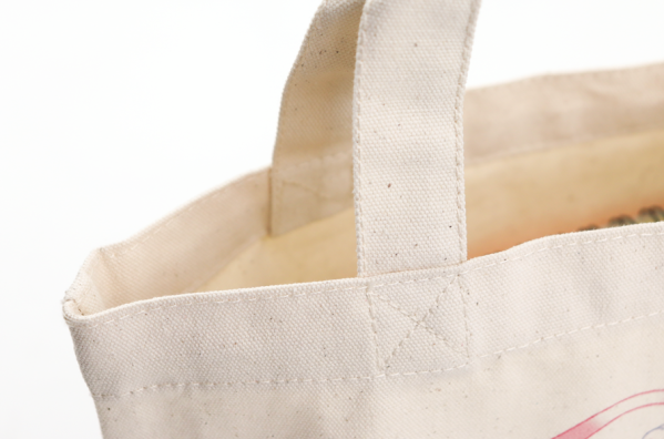 特急プリント対応のトートバッグは、厚みがあり丈夫な11.0ozのキャンバス生地。エコマーク認定の「無漂白」素材を採用しており、環境への配慮をアピールしたい企業のノベルティとしても最適です。