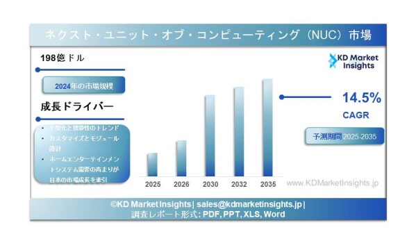 KD Market Insightsは、「Next Unit of Computing(NUC)市場の将来動向および機会分析(2025年~2035年)」と題した市場調査レポートの発行を発表した。本レポートの対象範囲には、現在の市場動向および将来の成長機会に関する情報が含まれており、読者が十分な情報に基づいたビジネス意思決定を行えるよう支援する。本調査レポートでは、KD Market Insightsの研究者が一次調査および二次調査の分析手法を活用し、市場競争の評価、競合他社のベンチマーク、およびそれらのGo-To-Market(GTM)戦略の理解を行っている。